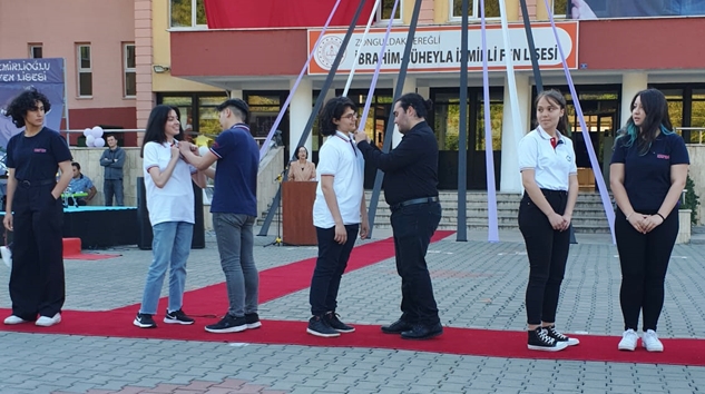 Zonguldak’ın Ereğli ilçesinde İbrahim-Süheyla İzmirli Fen Lisesi 8.Yıldız Takma Töreni, pandemi yasaklarının kalkması ile gecikmeli olarak gerçekleştirildi.