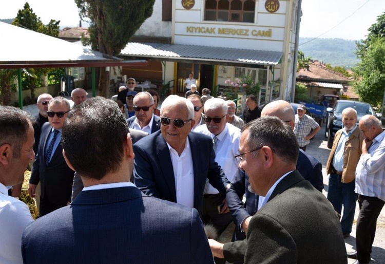 Bu bölgede çalışmalara başladık. Ender bey bana az evvel ana hatları ve evlere girecek servis hatları gösterdi, bu yıl bitmeden evlere bağlanacak. Kıyıcak halkı sıkıntı çekti tabi. Allah bana nasip etti, suyu da ben getirdim buraya, doğalgazı da. Asfaltını da yaptım, kanalizasyonunu da yaptım. Elimden geldiği kadar hemşehrilerimize hizmet ettim. Özellikle Ender beye ve teşkilat üyelerine teşekkür ediyorum. Halkımıza hayırlı olsun.”