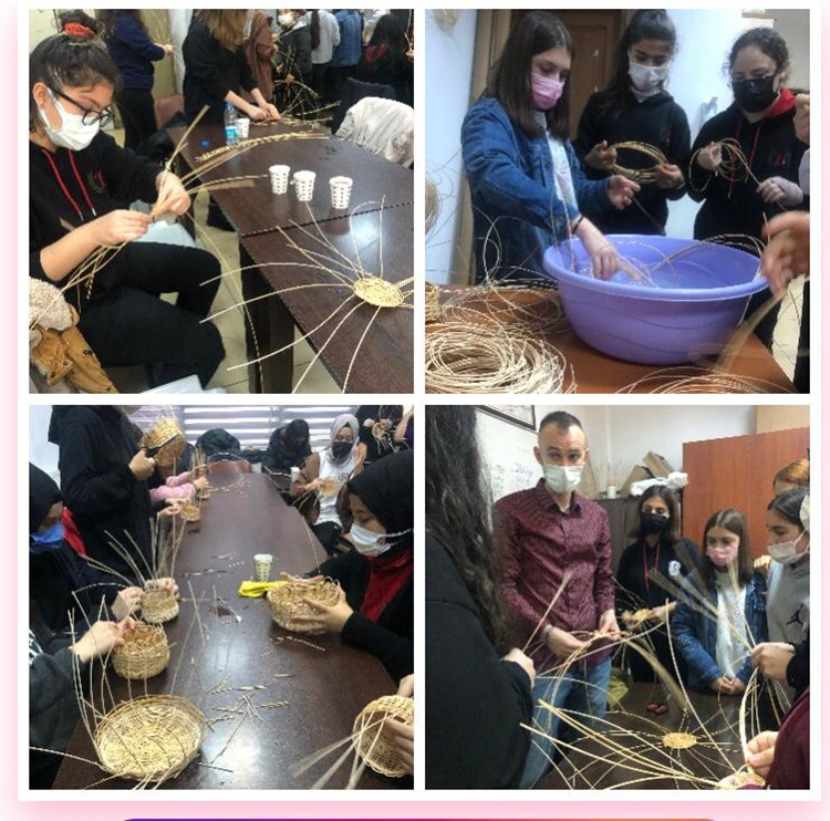 Diğer yandan aynı lisenin öğrencilerinden bir grup da Cumhuriyet Halk Evleri’nde sepet çalışmasına katılarak temel örme tekniklerini öğrendiler. Öğretmenleriyle birlikte, unutulmaya yüz tutmuş sepet geleneğini yeniden yaşatma projesinin bir parçası oldular.