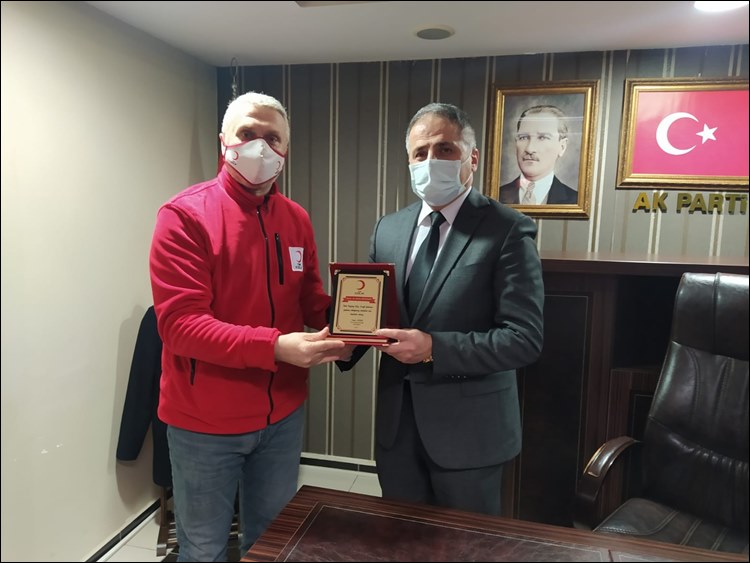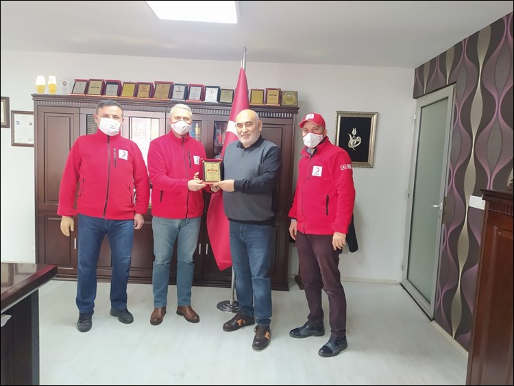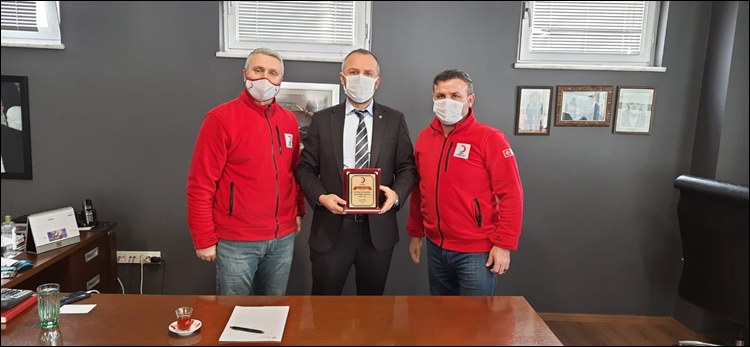 Gülüç Belediye Başkanı Gökhan M. Demirtaş, AK Parti Kdz. Ereğli İlçe Başkanı Saffet Bozkurt, Kdz. Ereğli TSO Başkanı Arslan Keleş, AK Parti Kdz. Ereğli eski ilçe başkanı Fatih Çakır, Yeminli Mali Müşavir Erol Şahin, ÇEMSAN Yönetim Kurulu Başkanı Serdar Bakkaloğlu ve Av. Ahmet Köse’yi ziyaret eden Kızılay yönetimi kendilerine plaket ve madalya takdim etti.