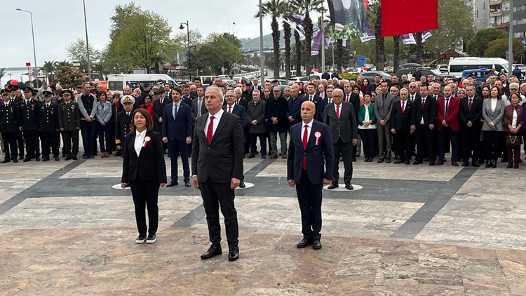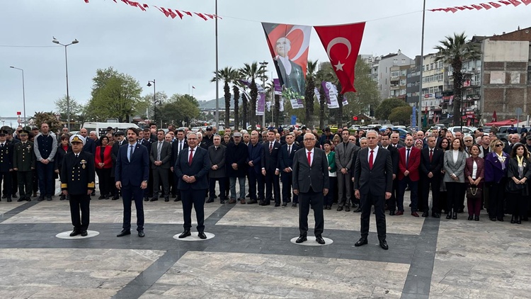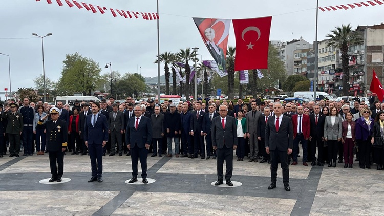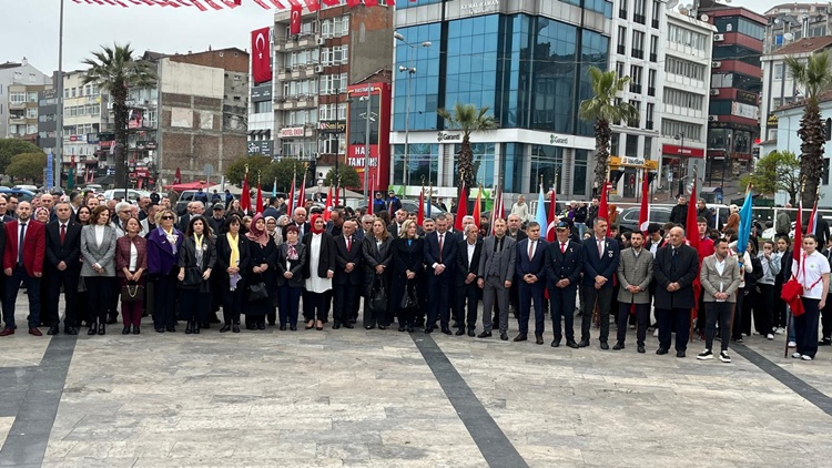 Kaymakamlık tarafından düzenlenen program kapsamında saat 9.30’da Kdz. Ereğli’de Atatürk Anıtı önünde tören düzenlendi. Törene Kdz. Ereğli Kaymakamı Mehmet Yapıcı, CHP Zonguldak Milletvekili Eylem Ertuğrul, Karadeniz Bölge ve Garnizon Komutanı Dz. Albay Ahmet Öztürk, Belediye Başkanı Halil Posbıyık, İlçe Milli Eğitim Müdürü Harun Akgül, Erdemir Genel Müdürü N. Aşkın Peker, siyasi partilerin STK’ların ve resmi dairelerin yöneticileri, okul yönetici ve öğretmenleri, öğrenciler ve asker-sivil erkan katıldı. Katılımın yoğun olması memnuniyet yarattı.
