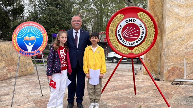 Resmi törenin ardından CHP, ADD, ÇYDD, Ereğli Lisesi Derneği, Rotary Kulübü, Eğitim ve Bilim İş Görenleri Sendikası ve diğer derneklerin yöneticileri Atatürk Anıtına çelenk sunumu yaparak saygı duruşunda bulundular. CHP ilçe Başkanı Ali Kocamanoğlu kürsü önünde 2 küçük çocuk ile birlikte günün anlam ve önemi üzerine konuşma yaptı, alkışlandı.