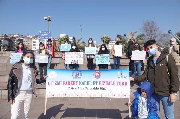 İki okulun ortak proje çalışması olan S’’empati’’K Sanat projesi kapsamında, Ereğli Sahilinde bulunan Amfi Tiyatro sahnesinde pandemi kurallarına uyarak gerçekleştirilen etkinlikte, öğrenciler çevredeki insanlara otizmi anlatarak bilgi sahibi olmalarını sağladılar.