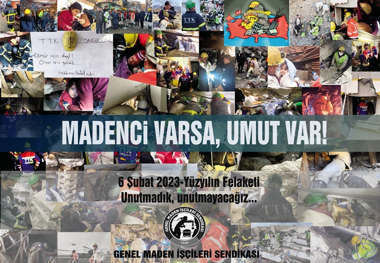 Maden işçisi, yeraltında olduğu gibi yerüstünde de ülkemiz için ne kadar önemli olduğunu tekrar tekrar göstermiştir. Biz madenciler, ülkemizin ve milletimizin bize ihtiyacı olduğu her yerde ve her an göreve hazırız. Madenci varsa, umut var. 6 Şubat depremlerinin ardından büyük özverilerle çalışan tüm arama-kurtarma ve yardım ekiplerine, yardım seferberliğine katılarak büyük bir dayanışmanın parçası olan herkese şükranlarımızı sunuyor, teşekkür ediyoruz.