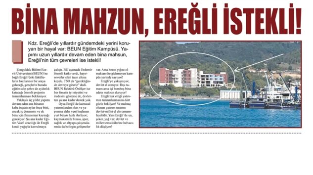 MANŞET HABER : BİNA MAHSUN, EREĞLİ İSTEKLİ!