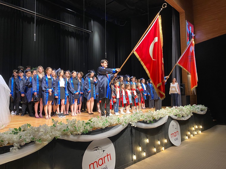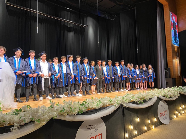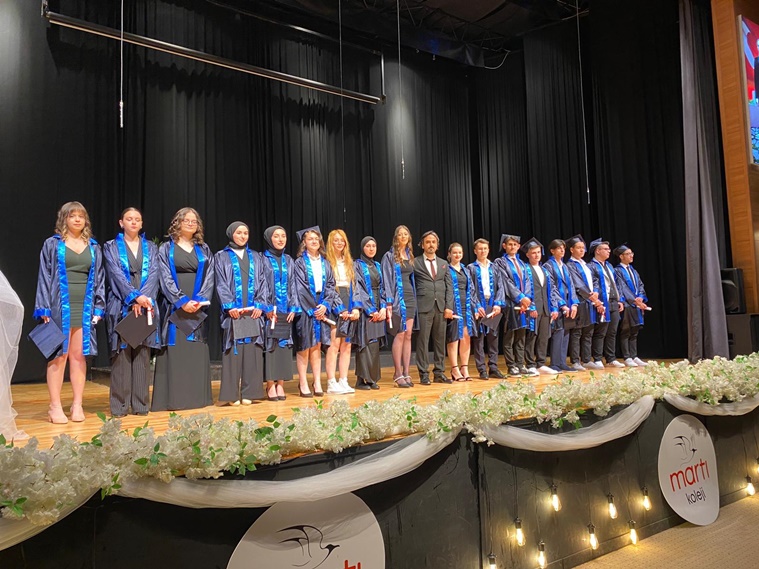 Hüseyin Tatoğlu Kültür Merkezinde 31 Mayıs Çarşamba günü düzenlenen görkemli törene Evim Martı Eğitim Kurumları Yönetim Kurulu Başkanı Numan Korkmaz, Okul Müdürü Ahmet Bal, yöneticiler ve öğretmenlerle birlikte yoğun veli katılımı oldu.