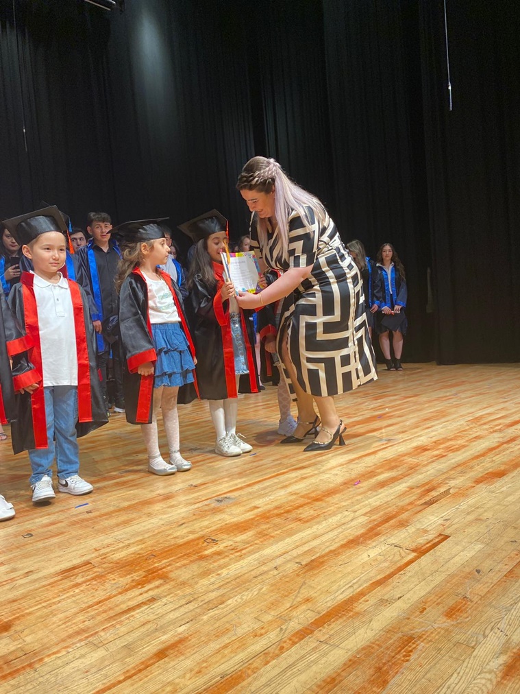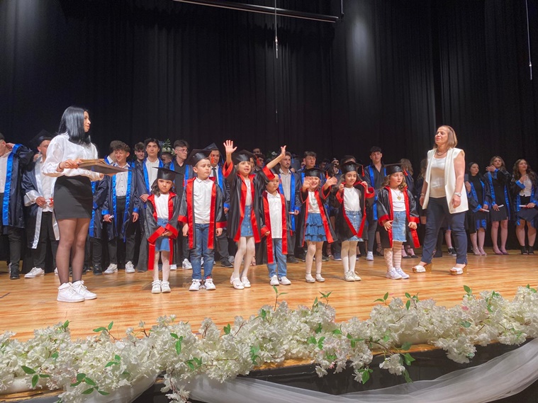Görkemli tören, ana sınıfı öğrencilerinin müzikli gösterileri, ilk 3 dereceye giren Okul 1. Ecren Ulus, Okul 2. Nisanur Sarıkaya ve okul 3. Hafsa Demircan’a ödüllerinin takdim edilmesi, bayrak-flama devir teslimi ve 10. Yıl Marşı ile renkli ışık gösterileri eşliğinde mezuniyet keplerinin havaya atılması ile sona erdi.