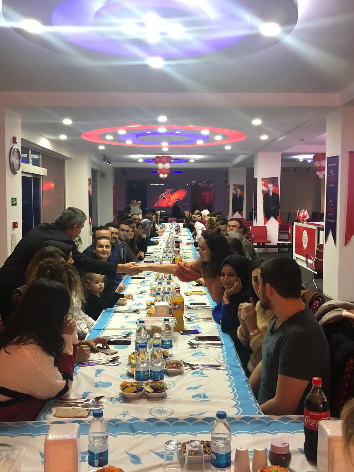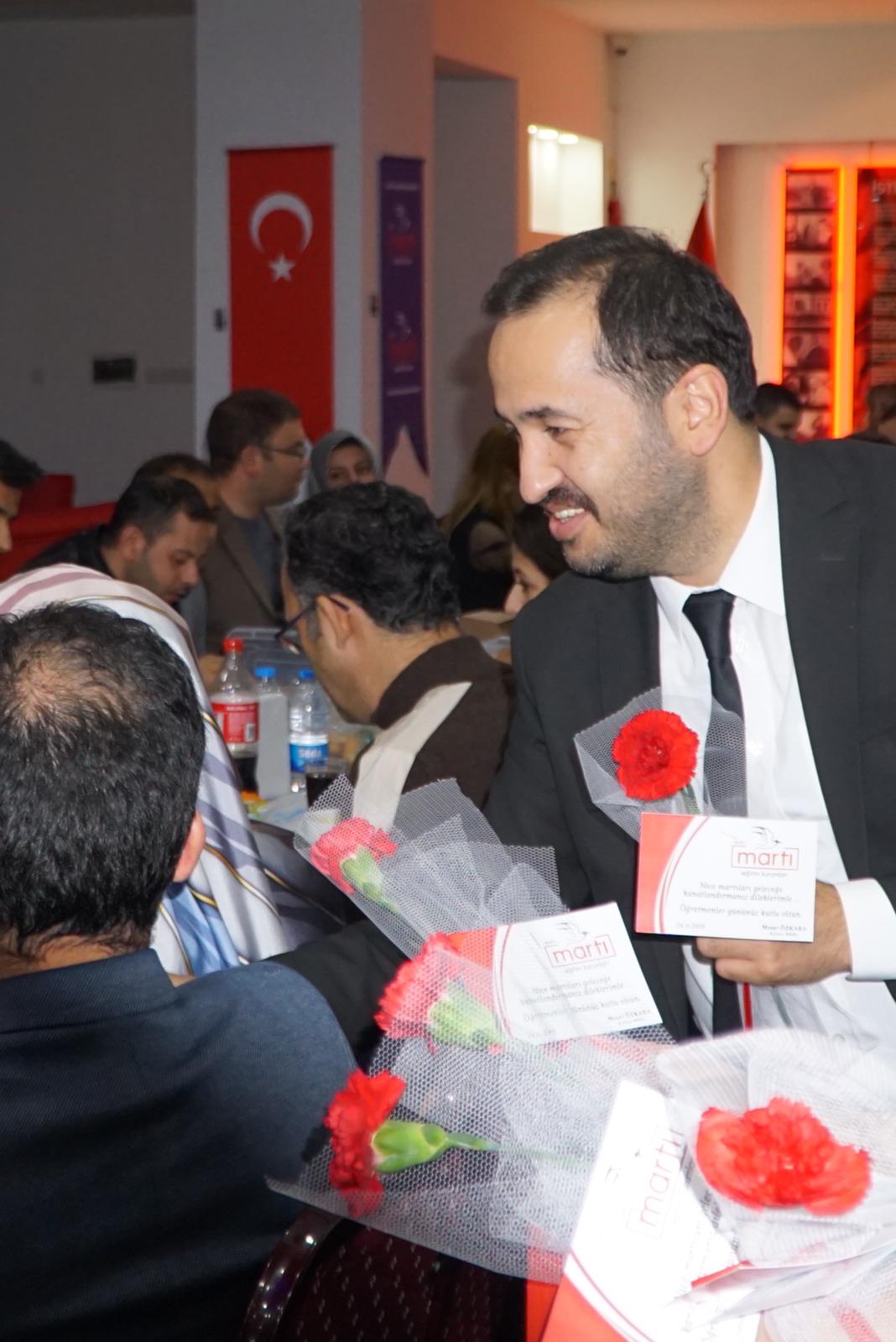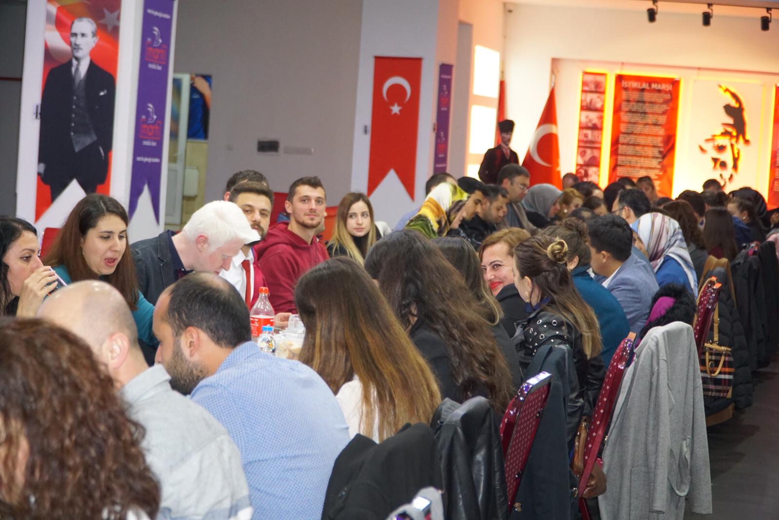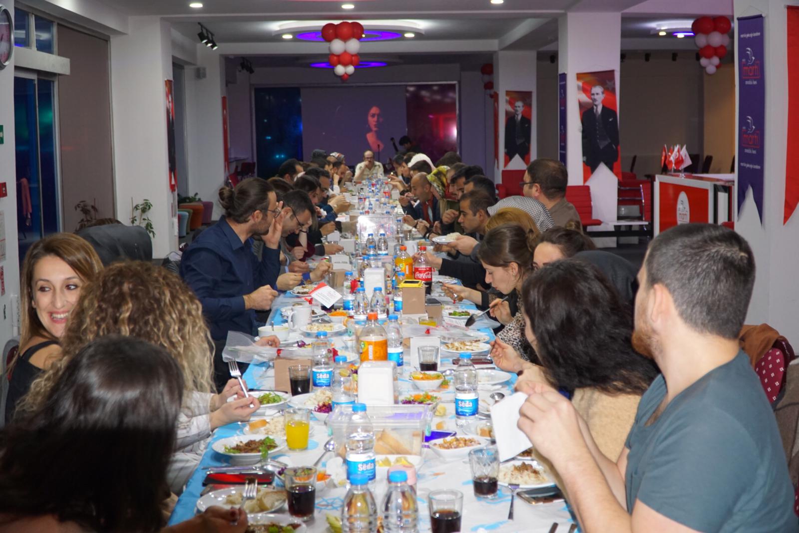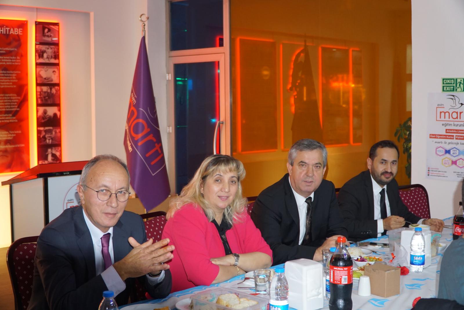25 Kasım Pazartesi günü Martı Anadolu Lisesi binasında gerçekleşen yemeğe Martı Eğitim Kurumları Yönetim Kurulu Başkanı Numan Korkmaz, Kurucu Müdürü Mesut Özkara ve Kurum Koordinatörü Ramazan Yıldırım’ın yanı sıra Martı bünyesinde çalışan tüm öğretmenler katıldı.