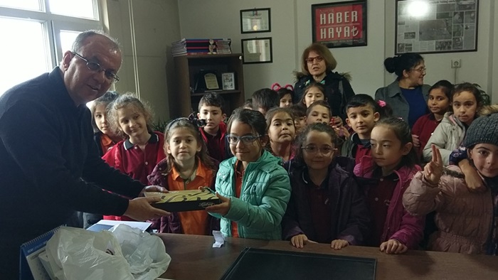 Kdz. Ereğli’de Nimet İlkokulu 2.sınıf Öğrencileri, Haber Hayat Yayıncılık’ı ziyaret ederek, İmtiyaz Sahibi Doğan Gönüllü ve ekibin 10 Ocak Çalışan Gazeteciler gününü kutladı ve gazetecilikle ilgili merak ettiği konuları öğrendiler. Gönüllü öğrencilerin mesleğe ilgisini şaşırtıcı ve takdire değer bulduğunu söyledi.