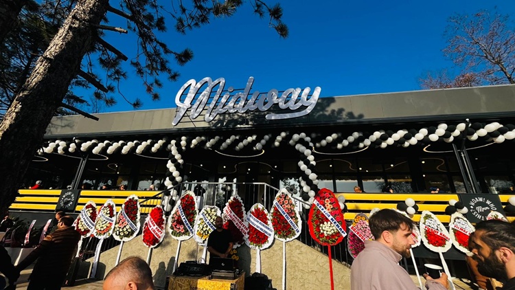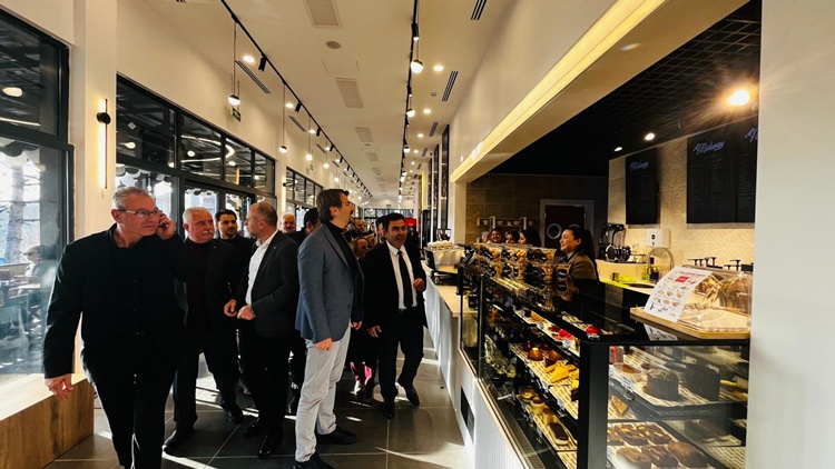 Ertuğrul ve protokol, açık-kapalı alanları ile 4 dönüm üzerine kurulan ve 25 personelin görev yaptığı Midway Coffe Lounge’in kafe restoran bölümlerini gezerek işletmecilerden bilgi aldı.