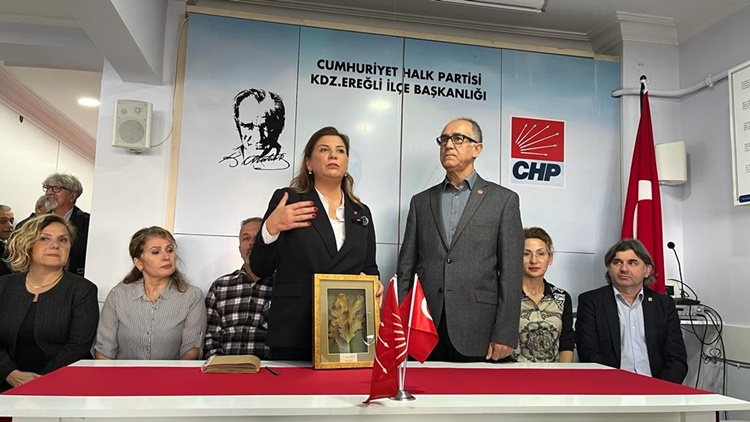 Aday Adaylığı açıklaması CHP Kdz. Ereğli ilçe örgütünde yoğun katılımla yapıldı. İlçe Başkanı Ali Kocamanoğlu şehir dışında olduğu için İlçe Başkan Yardımcısı Zafer İnanoğlu, 5 Aralık Dünya Kadın Hakları Günü olduğunu hatırlatarak Cumhuriyetin kazanımlarından söz etti ve Kurucu Lideri Mustafa Kemal Atatürk’ü andığını söyledi.