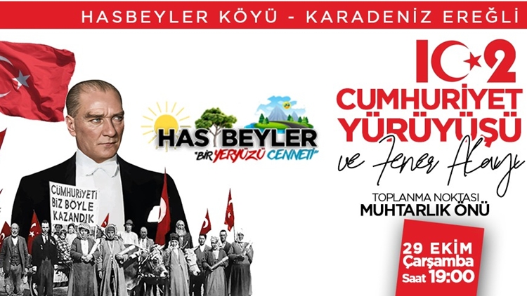 Zonguldak’In Ereğli ilçesine bağlı Hasbeyler Köyü Muhtarı Hasan Duman, Cumhuriyetimizin 102. yılı coşkusuna ortak olmak için tüm Ereğli halkını Hasbeyler Köyü’ne davet etti.