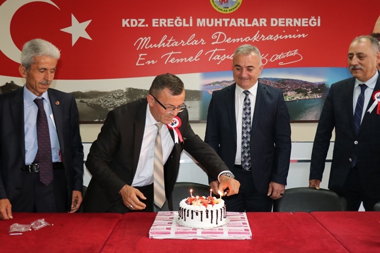 Kdz. Ereğli Belediyesi Önceki Dönem Başkanı ve Belediye Başkan Adayı Murat Sesli, 19 Ekim Muhtarlar Günü nedeniyle Kdz. Ereğli Muhtarlar Derneği’ni ziyaret etti. Başkan Vekili Nazif Kaplan, mahalle ve köy muhtarları tarafından büyük bir ilgi ile karşılanan Sesli, muhtarların gününü pasta keserek kutladı. Ziyarette konuşan Kdz. Ereğli Muhtarlar Derneği Başkan Vekili Nazif Kaplan, kendilerini yalnız bırakmadığı için Sesli’ye teşekkür etti. Başkan Vekili Kaplan konuşmasında “Önceki dönem ve 2024’de yapılacak seçimlerde de yine başkan adayımız Murat Sesli kardeşimiz, ağabeyimiz, muhtarlarımız hepiniz hoş geldiniz. 19 Ekim Muhtarlar Günü’nde bizleri yalnız bırakmadığınız için tüm muhtarlarım adına çok teşekkür ediyorum.” dedi.