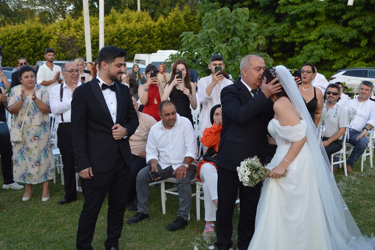 Tören, Gelin Nihan’ın Babasının kolunda alana getirilip alnından öpülerek Damat Ömer’e teslim edilmesi ile başladı. Bu sırada duygusal anlar yaşandı!