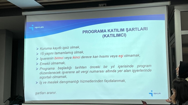 Katılımın yoğun olduğu toplantıda İş Kur İşveren Temsilcisi Hatice Tom, “Nitelikli İşgücü Yetiştirme Programı” konusunda sunum yaparak soruları cevaplandırdı. Tom; “Programın Aşamaları, İşgücü Talebi, Kursiyer Sayısının Belirlenmesi, Teorik ve Pratik Eğitim, Kurs Süresi, Karşılanan Giderler ve İşveren için NİYEP” konu başlıklarını detaylı olarak açıkladı. Programın işverenlere ve kursiyerlere avantajlar ve bazı yükümlülükler sunduğuna dikkat çeken Tom, sunumuna “İşbaşı Eğitim Programı” başlığı ile devam etti.