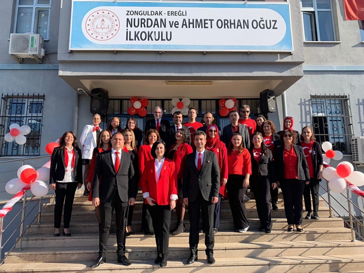 İlkokul adeta sil baştan yenilendi : Genç yaşına rağmen deneyimli idareci Begüm Ercan’ın yönetiminde 540 öğrencisiyle eğitim veren Nurdan ve Ahmet Orhan Oğuz İlkokulu, 2018 yılından bu yana yeni binasında faaliyetlerini sürdürüyor. Oğuz çifti, okulun yapımını üstlenmekle kalmayıp, öğrencilerin daha nitelikli şartlarda eğitim görmesi için her ayrıntıyı titizlikle takip ediyor. Oğuzlar’ın tadilat ekibinden edindiğim bilgilere göre; 2018’den bugüne okulda gerçekleştirilen yeniliklerden bazıları şunlar: 22 bin m² alan, PVC kaplamadan çıkarılarak kalebodur zemin ile yenilendi. Öğrencilerin kullanımına sergi salonu ve spor odası kazandırıldı. Güvenlik için koruyucu fileler takıldı. Eğitim-öğretim donanım malzemeleri modernize edildi. Atatürk Köşesi ve Hayırsever Köşesi yenilenerek daha özenli bir hale getirildi.