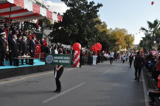 Zonguldak’ın Ereğli ilçesinde Cumhuriyet Bayramı Kutlama Töreni, pandemi nedeni ile uzun süredir özlemi çekilen; coşku, gurur ve milli duyguların yükseldiği kutlamalara sahne oldu.