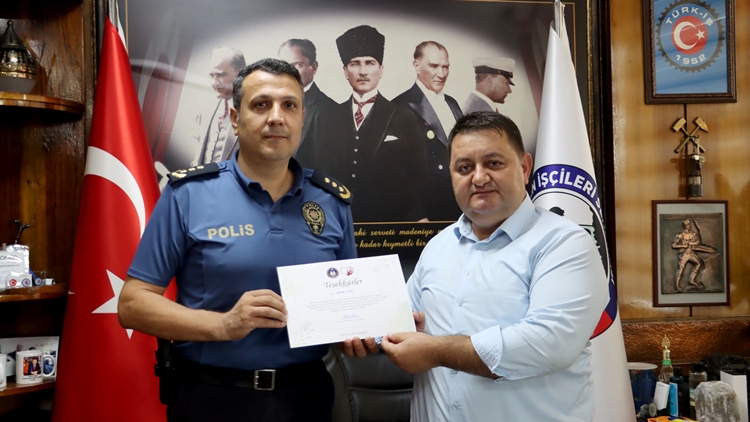 Polis Eşleri Derneği, Ankara’da 29 Mayıs – 1 Haziran 2025 tarihleri arasında emniyet teşkilatı mensuplarının üniversitede eğitim gören çocuklarına burs imkanı sağlanması amacıyla kermes düzenledi. Kermese, GMİS Genel Başkanı Hakan Yeşil’in de destek vererek katkıda bulunması nedeniyle dernek adına Zonguldak İl Emniyet Müdür Yardımcısı Rasim Karaman, Genel Başkan Hakan Yeşil’e teşekkür ziyaretinde bulundu. Yeşil’e, GMİS Genel Mali Sekreteri Yalçın Yiğit eşlik etti.
