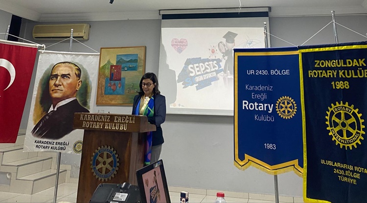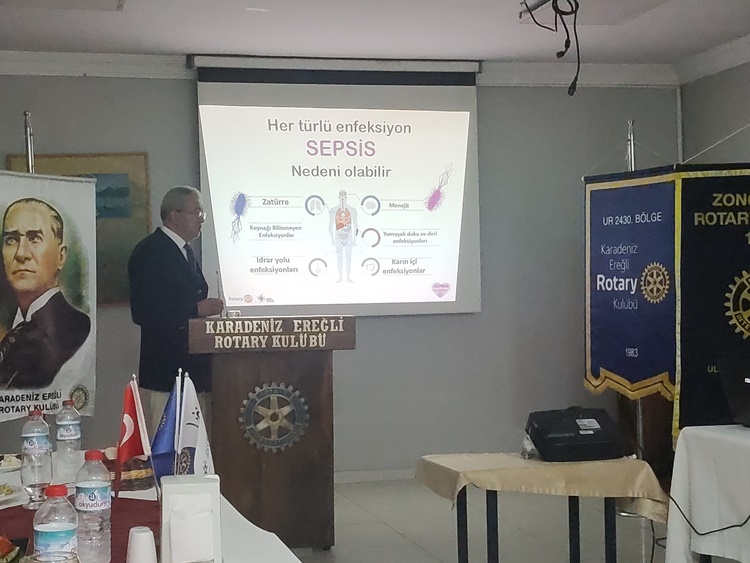 13 Eylül SEPSİS Farkındalık Günü kapsamında Kdz.Ereğli Rotary Kulübü, Zonguldak Rotary Kulübü ve TEB 17. Bölge Zonguldak Eczacı Odası olarak birlikte başladıkları proje kapsamında gerçekleşen toplantıda, Zonguldak Rotary Kulübü Dönem Başkanı Osman Aydın ve üyeleri, Zonguldak Eczacı Odası Başkanı Ecz. Ayşegül Kara ve Yönetim Kurulu üyesi Ecz. Burcu Onay’ın da katıldığı gecede, kulüp üyesi Op.Dr.Emin Damgacı, SEPSİS hakkında aydınlatıcı bir sunum paylaştı. Sunum sonrasında soruları cevaplayan Damgacı, SEPSİS nedeniyle her yıl 11 milyon insanın öldüğüne dikkat çekti.