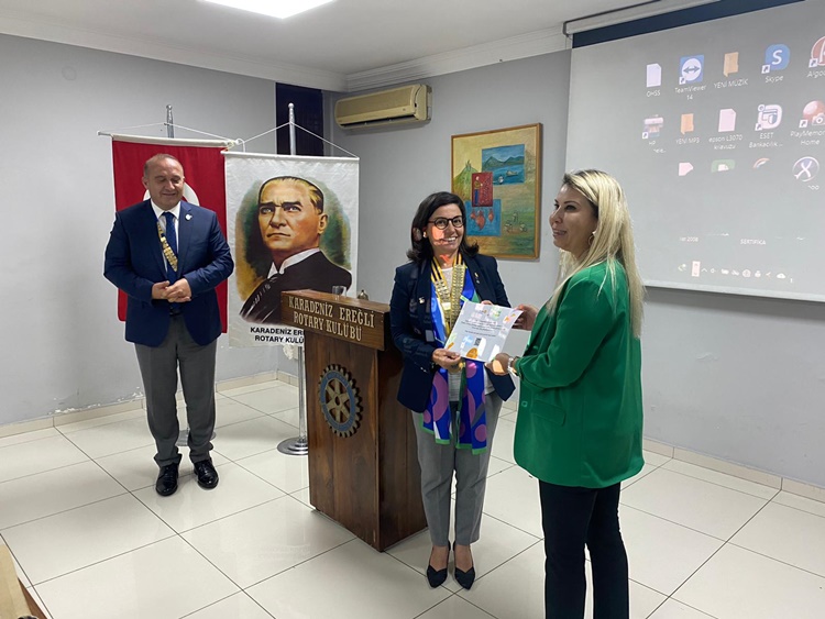 Kdz.Ereğli Rotary Kulübü Başkanı Fulya Dinçer, toplantı sonunda SEPSİS projesine destekleri için, Zonguldak Rotary Kulübü Başkanı Osman Aydın ve Zonguldak Eczacı Odası Başkanı Ecz.Ayşegül Kara, kurumları adına 100 adet tohum topu bağışını içeren sertifikalarını takdim etti.