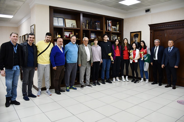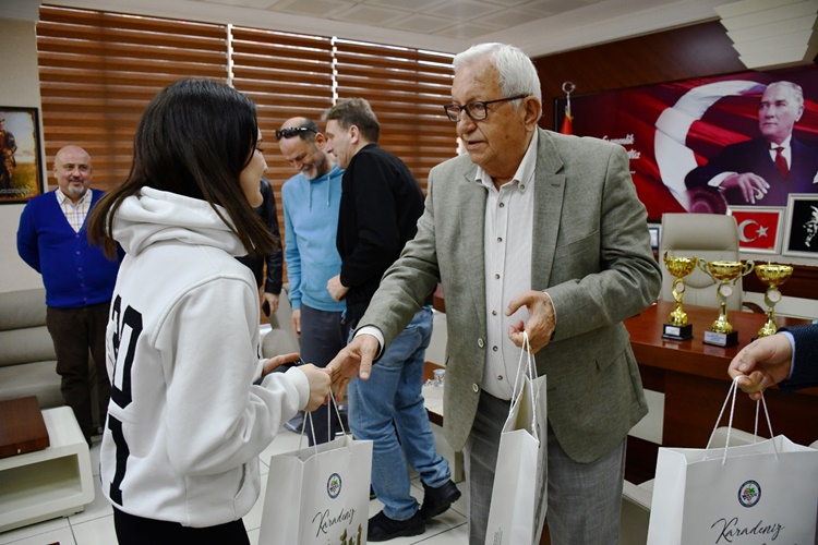 Kdz.Ereğli Belediyespor As Başkanı Tarkan Atik,Salon Sporları İdari Koordinatör Tanju İke ile Antrenörler Muharrem Okumuş ve İsmail Nusret Ansen’in yanı sıra geleceğin yıldız voleybolcu adayları da kendilerine ve spora verdiği destekten dolayı Başkan Posbıyık’a teşekkür ettiler.