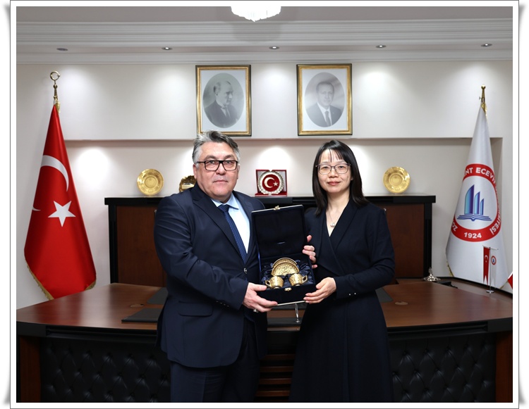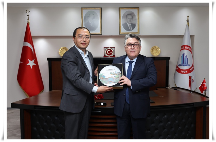 Zonguldak Bülent Ecevit Üniversitesi (BEUN) Rektörü Prof. Dr. İsmail Hakkı Özölçer, Şangay Dianji Üniversitesi (SDJU) Uluslararası Eğitim Fakültesi Dekan Yardımcıları Quanjing Chen ve Ye Shi’yi makamında kabul etti.