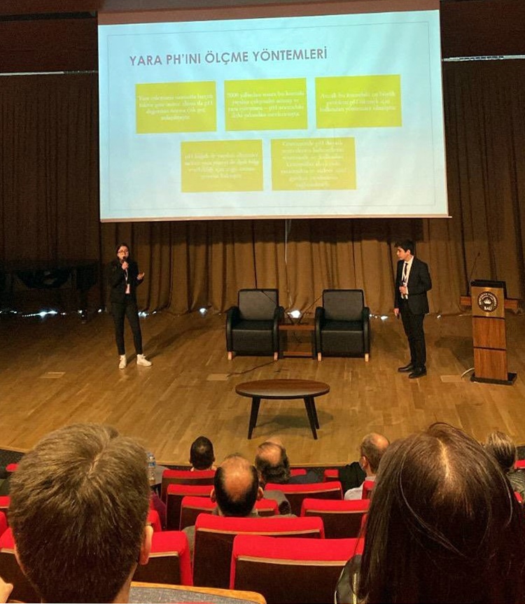 Öğrenciler, “Hibiskus İçeren Doğal PH İndikatörlü ve Sensörlü Veri Aktarımı Yapan Hidrojel Yara Örtüsü Sentezi” projesi ile günümüz yara örtülerinin özelliklerini teknolojiyle birleştirip bütün bu dezavantajları ortadan kaldıran, yaranın pH’nı içinde bulunan sensörler ve ekranla anında ölçüp yaranın durumu hakkında bilgi veren yeni nesil yerli bir hidrojel üretmeyi amaçladı.