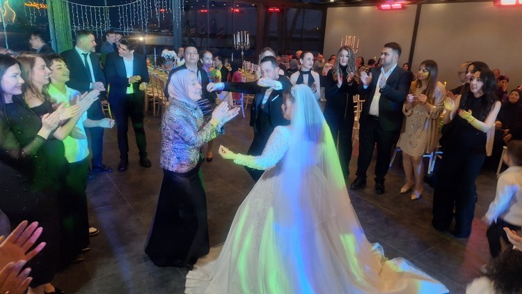 Nikah merasimi ardından geçilen yemekte davetlilere çeşitli yiyecek ikramlarında bulunuldu. Bu sırada DJ Ferhat’ın yönetiminde çalan müzik ile Gelin Sibel ile Damat Berat ilk düğün danslarını yaparken, bir süre sonra davetliler de kendilerine eşlik ettiler.