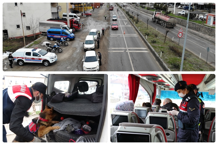 Jandarma Genel Komutanlığı’nın özel izni ile Karaman beldesi mevkiinde yapılan uygulamada sürücüler ve araçlar denetlendi. Zonguldak İl Jandarma Komutanlığı Asayiş Komando Birliği denetimde çevre güvenliği aldı. Hızır ve Huzur timleri durdurulan araçlar ve sürücüler üzerinde kimlik tespiti sorgulamaları yaptı. Drone havadan görüntülenen denetimde Şila ve Vera da yer aldı. Narkotik köpeği Vera ve bomba imha köpeği Şila, senaryo gereği durdurulan bir araçta sırayla arama yaptı. Aracın çevresinde arama yapan hassas burunlar, eğiticilerinin eşliğinde uyuşturucu madde ve patlayıcı madde olarak değerlendirilen cisimlere pozitif tepki verdi.