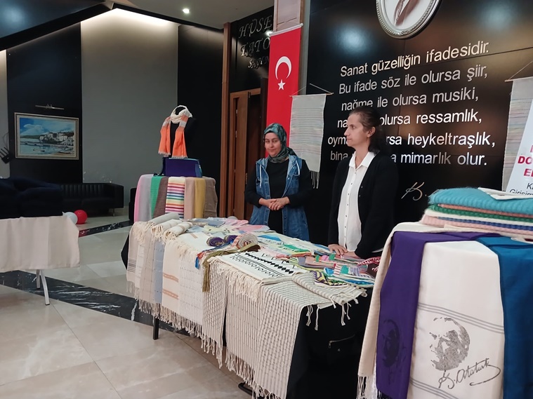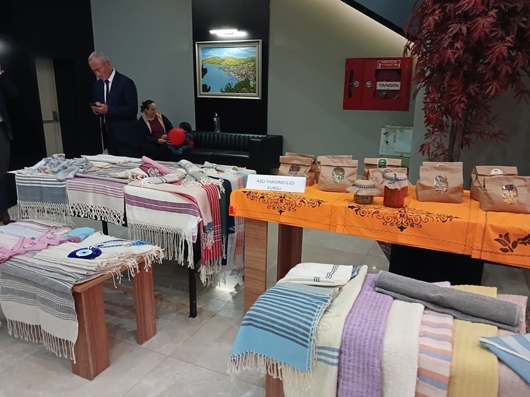 Törenin sonunda Tatoğlu Kültür Merkezi’nin fuaye alanında kursiyerlerin çeşitli kurslarda hazırladıkları el emekleri ürünlerinden oluşturulan sergi gezildi.