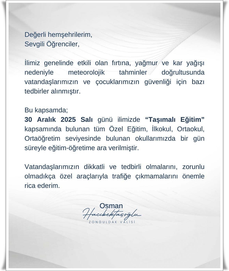 Zonguldak Valisi Osman Hacıbektaşoğlu imzalı açıklama şöyle :