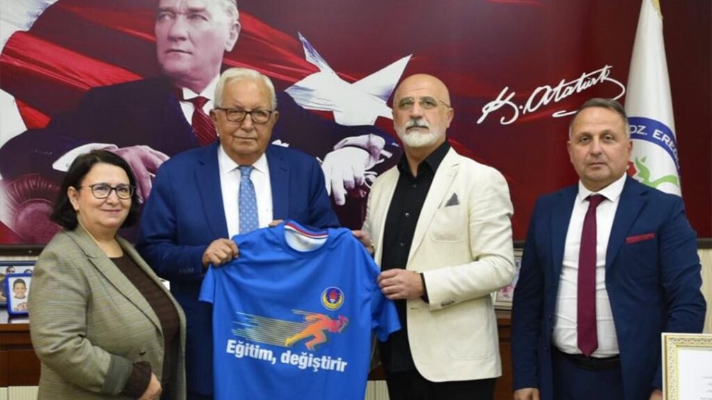 Türk Eğitim Derneği(TED) Kdz. Ereğli Koleji Vakfı 2. Başkanı Mesut Avcı, TED Kdz. Ereğli Koleji Vakfı Özel Lisesi Müdürü ve Genel Koordinatörü Hülya Korkut ve TED Kdz. Ereğli Koleji Vakfı Özel Anaokulu, İlkokulu ve Ortaokulu Müdürü Sahir Akçakoca, Kdz. Ereğli Belediye Başkanı Sayın Halil Posbıyık’ı ziyaret ederek “Eğitim, Değiştirir” temalı koşu formasını hediye etti.