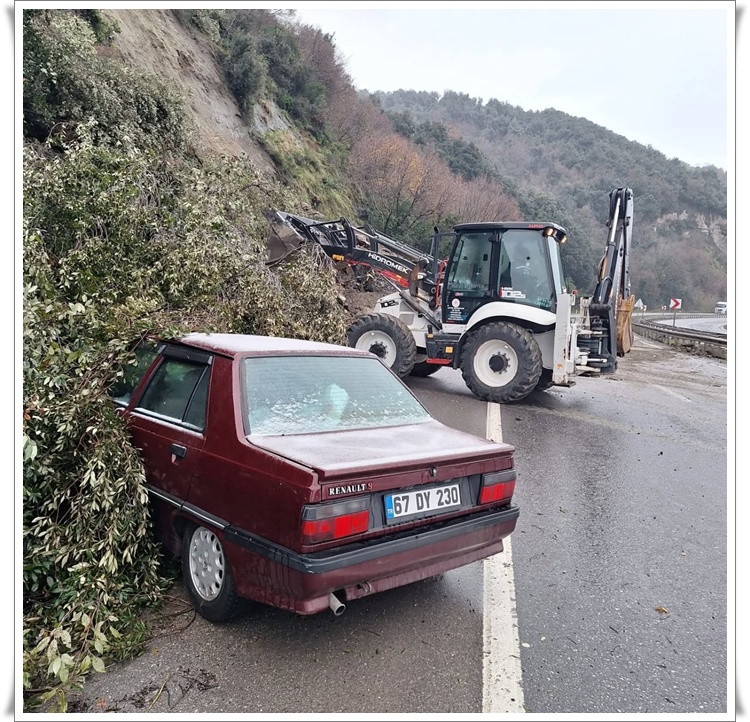 Kdz. Ereğli Gülüç Beldesi Tersaneler Bölgesi Karayolunda 17 Ocak Cumartesi günü sabah saatlerinde heyelan meydana geldi. Maddi hasarlı bir araç haricinde ucuz atlatıldığı değerlendirilen olaya Gülüç Belediyesi ekipleri iş makineleri ile müdahale ederek yolu açtı.