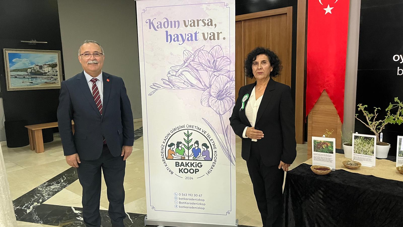 Kooperatifin öncü girişimcilerinden Diş Hekimi Deniz Arkun ise BAKKA işbirliği ile hazırlanan “Tabip Kadınlar Projesi” sunumu eşliğinde yaptığı konuşmada, tıbbi aromatik bitki üretimi ile ilgili bilgi paylaşımında bulundu. Arkun özetle, “TR81 Bölgesinde endemik bitkileri olan başta sahlep, mavi yemiş, aronya üretimi hali hazırda bulunmaktadır. Ancak küçük alanlarda ve bireysel üretim yapıldığı için ekonomik faydası kısıtlıdır. Bizim iş modeli olarak farkımız ve hedefimiz küçük üreticileri kurulumunu tamamladığımız kadın emeğini esas alan kooperatif çatısı altında bir araya getirerek ; eğitimle desteklenmiş, temiz tarım yöntemi ile atıl durumdaki tarım alanlarını işleyerek insan sağlığına ve çevreye uygun kalitesi yüksek sertifikalı ürünleri ulusal ve uluslararası pazarlarda gıda, ilaç, ve kozmetik sektöründe söz sahibi firmalarla buluşturarak ekonomik fayda sağlamaktır.” dedi.