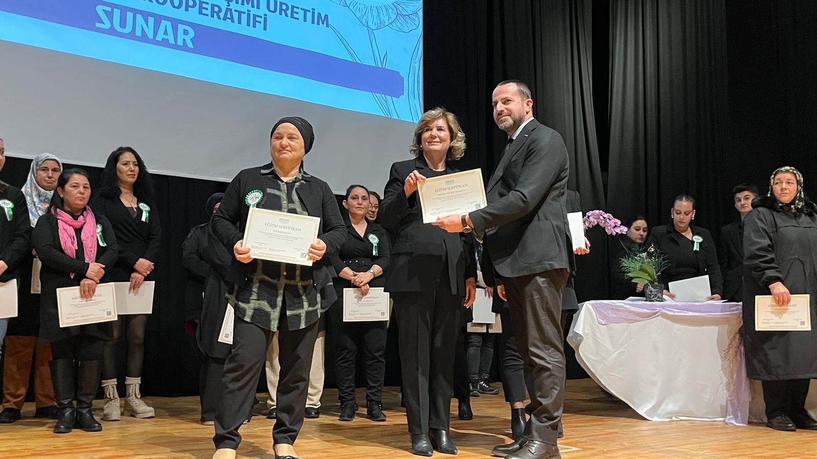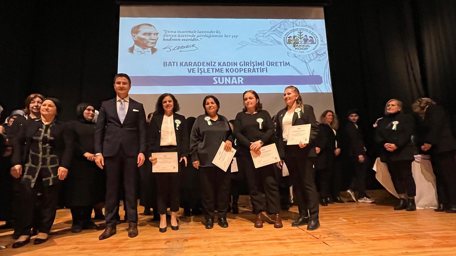 Program, süreçte emeği geçenlere plaket takdimi ve tüm kooperatif üyesi kadınların sahneye davet edilerek toplu fotoğraf çekimi ile son buldu.