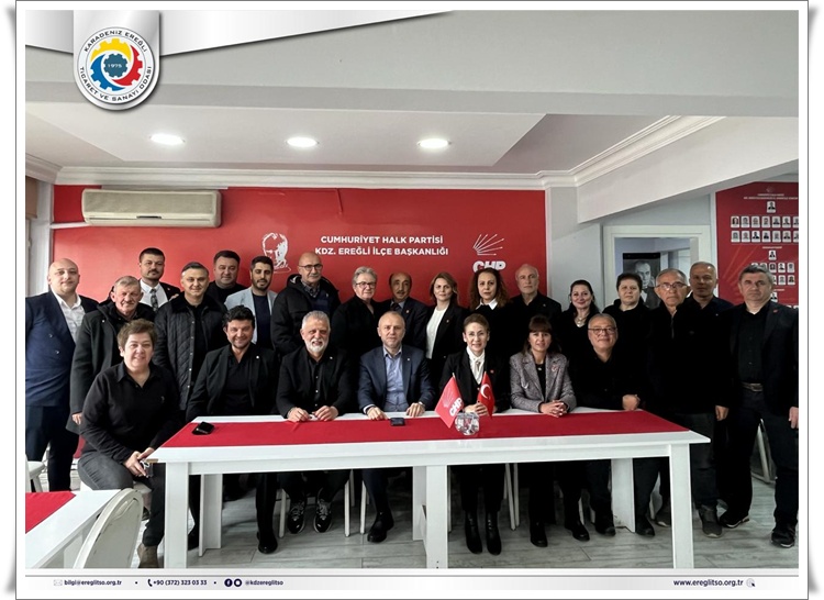 Kdz. Ereğli Ticaret ve Sanayi Odası heyeti, CHP Kdz. Ereğli İlçe Başkanlığı’nı ziyaret ederek İlçe Başkanı Zerrin Yılmaz Erdoğan ve ilçe yönetimiyle bir araya geldi. Samimi bir atmosferde gerçekleşen ziyarette, Kdz. Ereğli’nin ekonomik yapısı ve kent gündemine ilişkin konular ele alındı.
