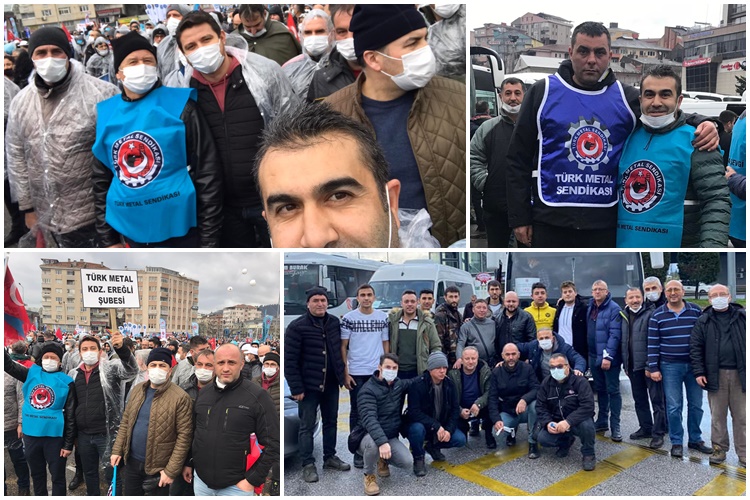 Kocaeli Mitingine, Kdz. Ereğli’de faaliyet gösteren Ereğli Demir ve Çelik Fabrikaları( Erdemir)’nda örgütlü Türk Metal Sendikası işçileri de Şube Başkanı Yakup Yılmaz ile birlikte katılarak sendikalarına destek verdiler.