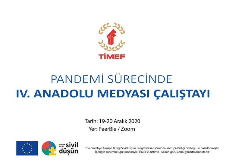 Genel Başkanlığını Gazeteci Şakir Gürel’in üstlendiği Merkezi Ankara’da bılunan Tüm İletişim ve Medya Federasyonu (TİMEF) organizasyonuyla; İnternet Medya ve Bilişim Federasyonu (İMEF) Dijital Medya Federasyonu (DİMEF), Türk Dünyası Gazeteciler Federasyonu (TDGF), Türkiye Gazeteciler Federasyonu (TGF) Genel Başkanları ve Türkiye’nin yedi bölgesinden 81 ili temsilen, her biri alanında yetkin gazete, radyo, televizyon ve internet haber portalı sahibi 150 gazetecinin katılımı ile “Pandemi Sürecinde IV. Anadolu Medyası Çalıştayı” çevrimiçi gerçekleştirildi.