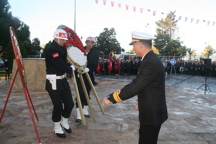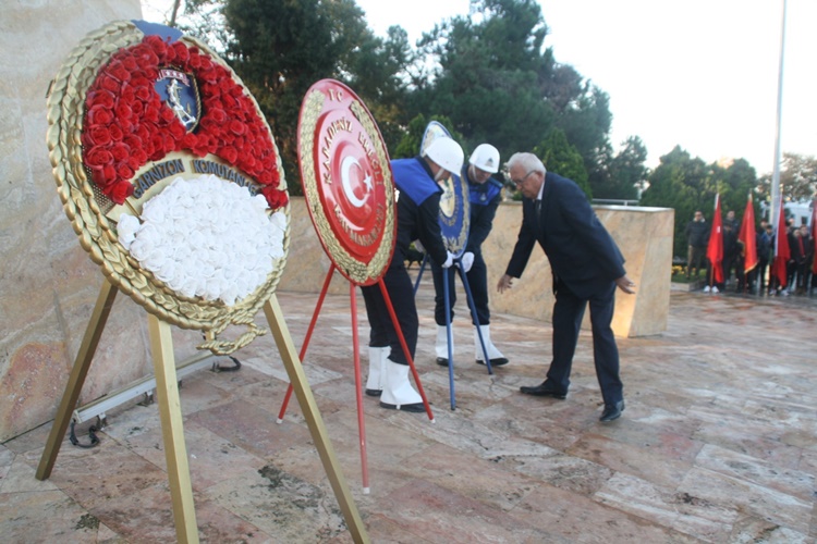 Atatürk Anıtı önünde gerçekleştirilen törende, Karadeniz Ereğli Kaymakamı Mehmet Yapıcı, Karadeniz Bölge ve Garnizon Komutanı Tuğamiral Niyazi Uğur, Belediye Başkanı Halil Posbıyık, siyasi partiler ve bazı sivil toplum kuruluşları çelenk takdiminde bulundu.