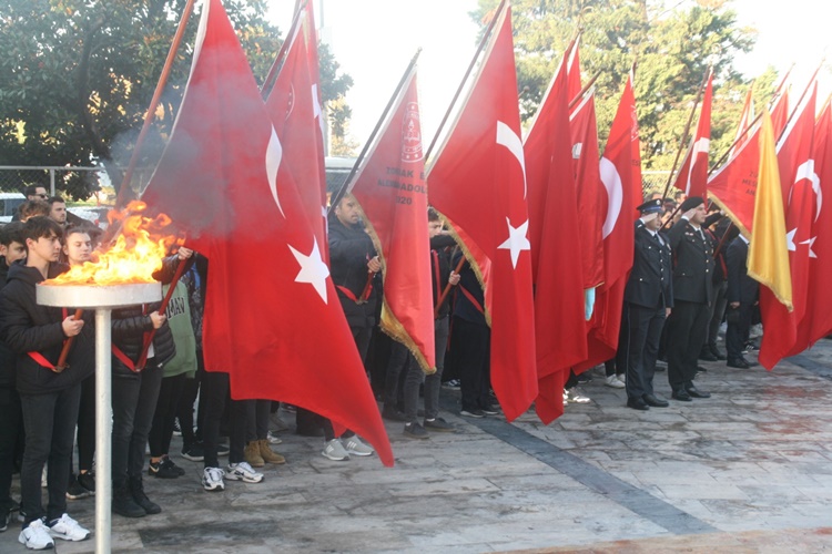 Saat 09.05’te sirenler eşliğinde saygı duruşunda bulunuldu, ardından İstiklal Marşı söylendi.
