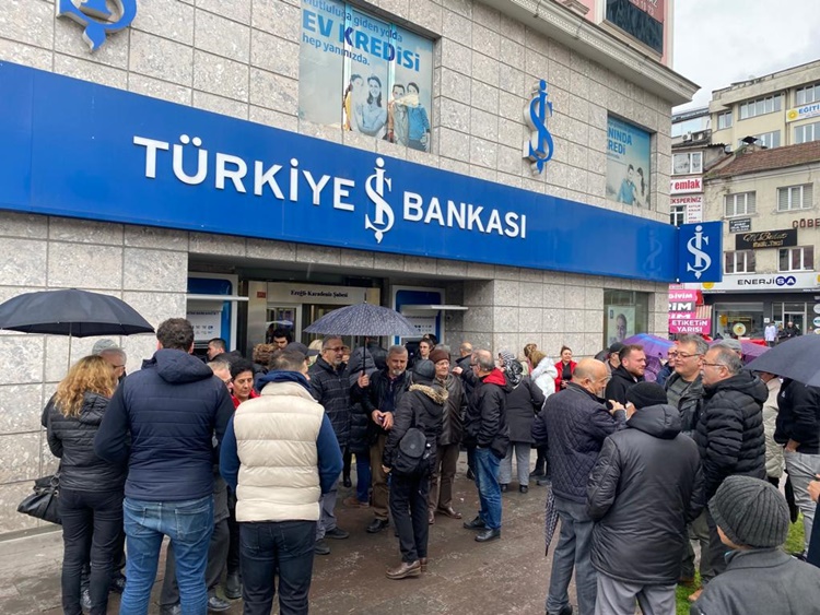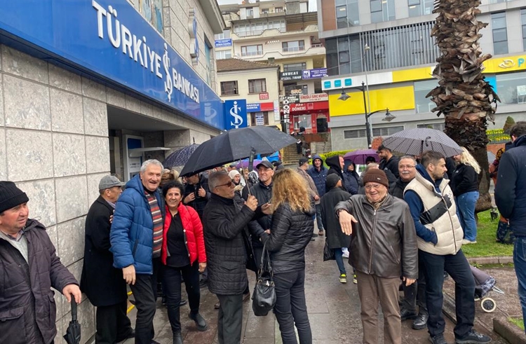 Konuşma alkışlarla karşılık bulurken, toplanan kalabalık “Umudumuz Kılıçdaroğlu” şeklinde slogan atarak, banka dışında gişe sırasını beklemeye koyuldu.