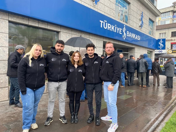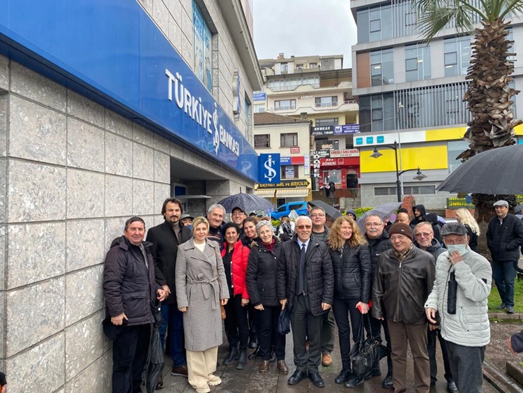 07 Nisan 2023 Cuma günü saat 14:30’da İŞ Bankası önünde buluşan CHP üyeleri, gişelerden sıra numarası alarak Kılıçdaroğlu’nun seçim kampanyasına destek olmak amacı ile para yatırdı.