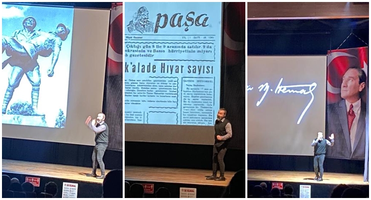 Müthiş performansı ile izleyicileri adeta büyüleyen Tiyatro Sanatçısı Utku Erişik’in, çoğunlukla Çanakkale Savaşı döneminin cephe savaşlarını canlandırdığı oyunda, dönemin ağıtlarının bugün de sürdüğünü savunarak, Anadolu’nun emperyalist oyunların hala devam ettiğini “biz bu hale nasıl geldik çığlığı” ve çarpıcı örneklerle gözler önüne serdi.