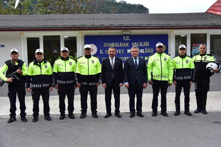 • Zonguldak Valisi Osman Hacıbektaşoğlu İl Emniyet Müdürü Sinan Ergen ile birlikte, trafik tedbirleri denetimlerine katılara kurallara uyulmasını tavsiye etti.