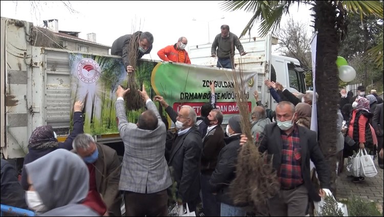 “Deniz ve orman bu bölgenin artısı, bunlar var olduğu için yaşam daha kaliteli oluyor. Yeşilliğe önem veriyoruz. İklim olarak da kendiliğinden yeşillik olabiliyor. Orman Bölge Müdürlüğü’ndeki arkadaşlara gelir getirici ağaçları önemseyelim, dağıtalım diye söylüyoruz. Bunun da karşılığını alıyoruz. Kestane doğal olarak doğada oluyor fakat yeterli değil o yüzden değer verelim. Özellikle Zonguldak kestanesinin lezzeti çok daha ayrı, biraz küçük oluyor fakat çok kaliteli. Vatandaşlarımız toprakla daha fazla meşgul olması gerekiyor, toprağı daha fazla işlemesi gerekiyor. Kestane her yerde yetişen bir ürün değil. Sadece ormanın verdikleri ile değil dışarıdan kestaneler de alarak bunu geliştirmemiz gerekiyor. Yine ceviz ve ıhlamur da bunlardan birisi. Her alandan gelir getirici bir davranış içerisinde olmamız ve ilerletmemiz gerekiyor.” İfadelerini kullandı. Konuşmaların ardından fidan dağıtımına geçildi.