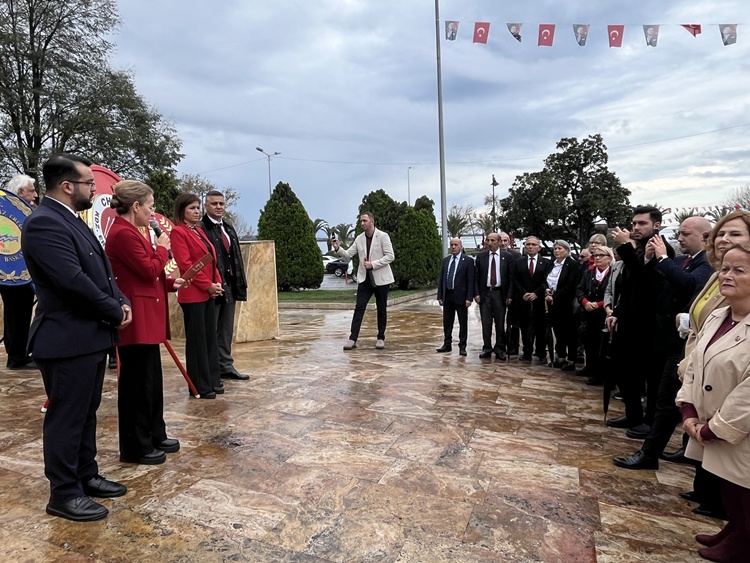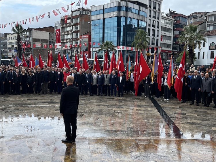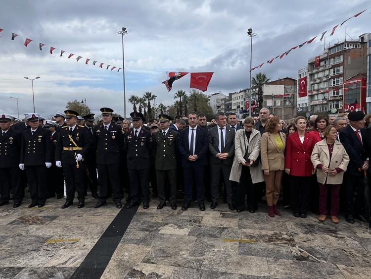 Törende ilk olarak, sırası ile Kaymakam Yılmaz, Komutan Korkut ve Başkan Posbıyık Anıta çelenk sundu. Saygı Duruşunda bulunulması ve İstiklal Marşı’nın okunması ile ilk resmi tören sone erdi. Daha sonra CHP İlçe Başkanı Zerrin Yılmaz Erdoğan ve bazı STK’lar anıta çelenk sunarak saygı duruşunda bulundu ve konuşmalar yapıldı. Bu sırada bol bol hatıra fotoğrafı çekildi.