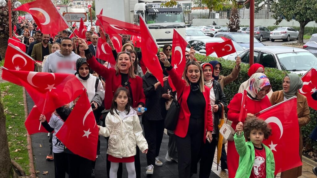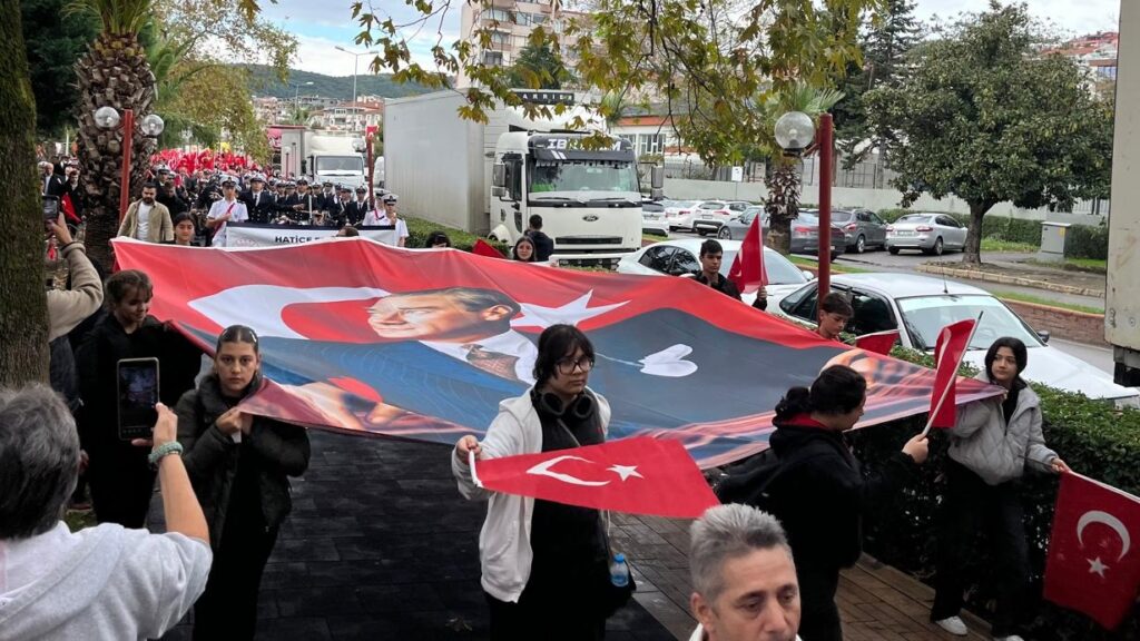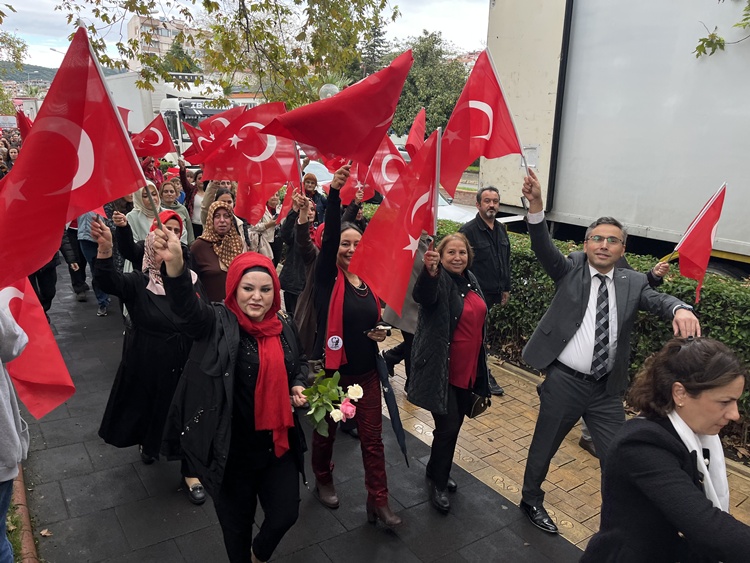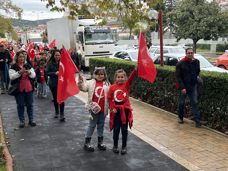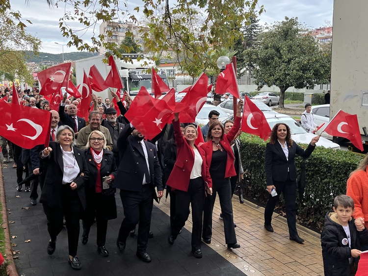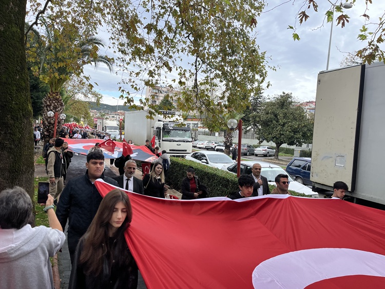 Ardından Polisevi önünden Anıt önünde Cumhuriyet Yürüyüşü gerçekleştirildi. Bando eşliğinde protokolün de katılımı ile ağırlıklı olarak öğretmen ve öğrencilerinin yer aldığı yaklaşık 3 km.lik yürüyüşte bazı STK’lar ve siyasi partiler de Türk Bayrağı ve Marşlar eşliğinde yürüdüler. Coşkulu görüntülere sahne olan tören programı sahilde bulunan Amfi Tiyatro’da etkinliklerle devam etti.