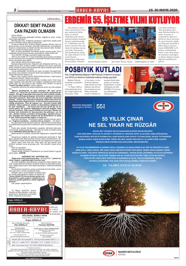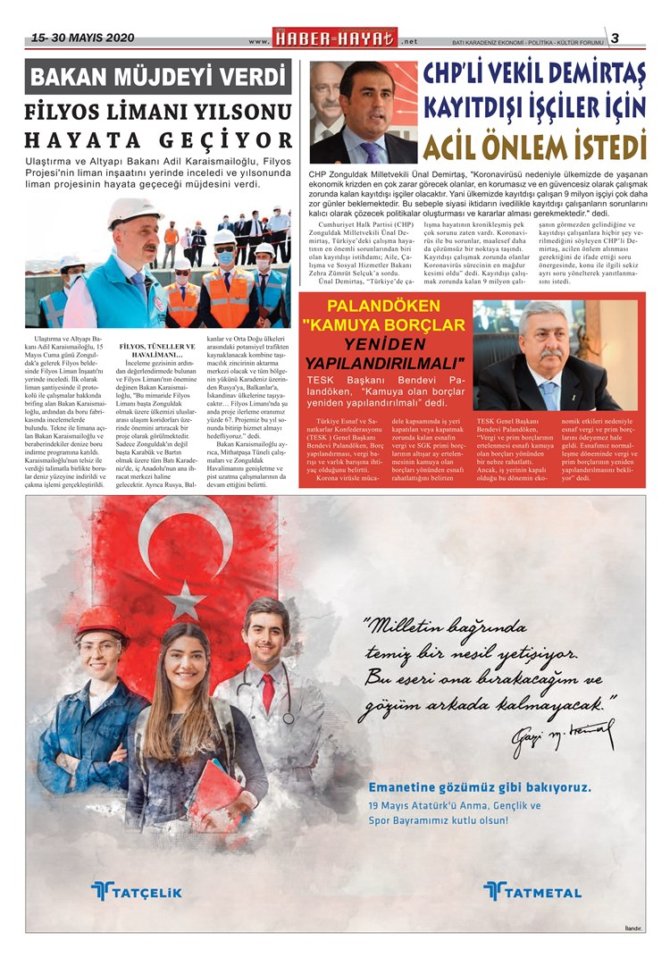 ‘BATI KARADENİZ EKONOMİ POLİTİKA KÜLTÜR FORUMU’ VİZYONU VE ‘AYDINLIK BİR DÜNYA AYDINLIK BİR HAYAT’ MİSYONU İLE 8 YILDIR EKONOMİ TEMALI YAYIN YAPAN GAZETENİZ “İŞ’TE HABER HAYAT”IN YENİ SAYISI YAYINDA…