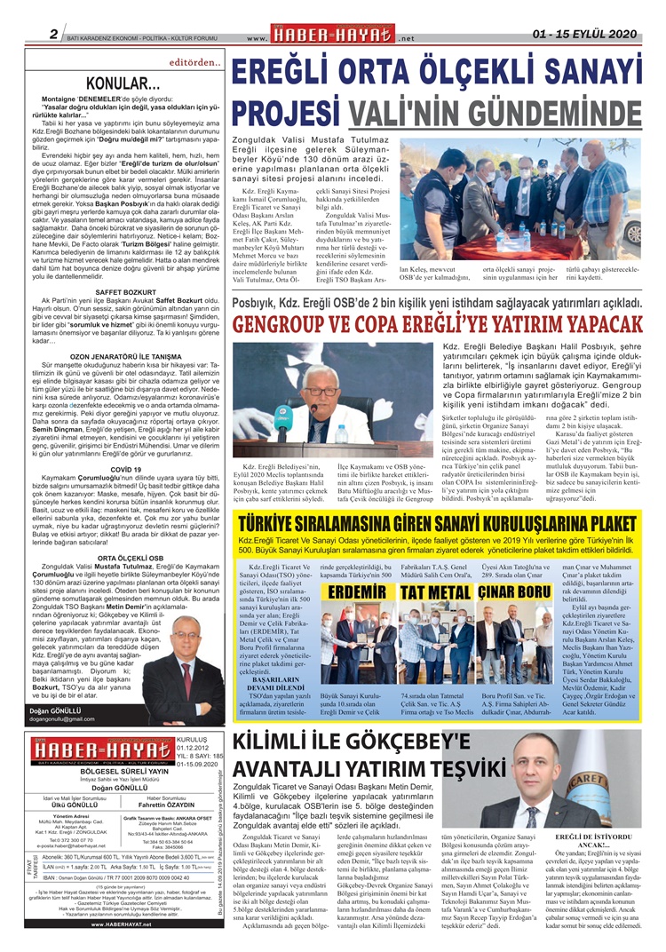 GAZETEMİZİN TÜM SAYFALARI; GAZETE, ABONELERİN ADRESİNE ULAŞTIKTAN SONRA YAYINLANACAKTIR.